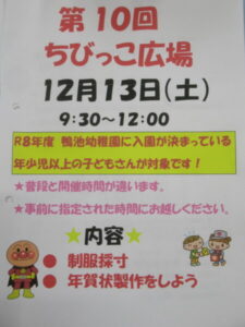 その為、令和8年度 鴨池幼稚園に入園が決まっている年少児以上の皆さんが参加対象となります。 令和8年度 0・1歳児(もも組)、2歳児(ちゅうりっぷ組)に入園される方は、今回のちびっこ広場への参加は対象外となりますのでご了承ください。