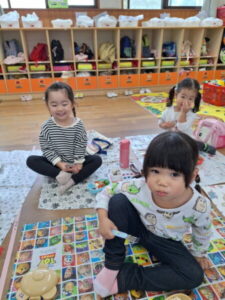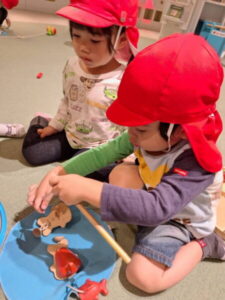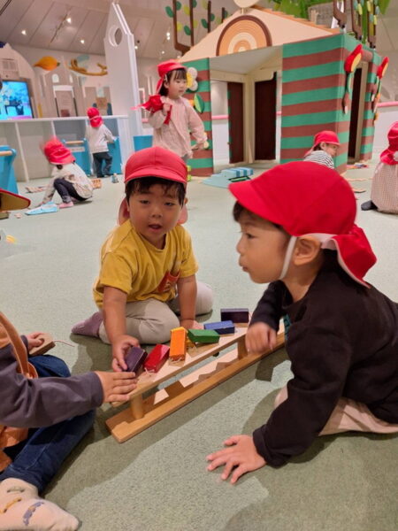 トンネルをくぐったり、おままごとを楽しんだり、友達と楽しく遊ぶことができました♪