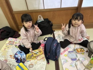 毎回子どもたちが楽しみにしているお弁当は、和光幼稚園の隣にあるお寺、『本願寺鹿児島別院』のお部屋をお借りして、おいしくいただきました🍱