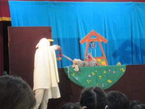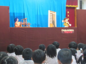 今回は、日本の昔話から「瓜子姫とあまんじゃく」、グリム童話より「おおかみと七ひきのこやぎ」の2つ演目を鑑賞しました。