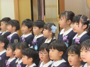 最後に、お父さん・お母さんへ感謝の気持ちを込めて、「さよならぼくたちのようちえん」を歌いました♪立派に成長した子どもたちの姿に、感動の涙がいっぱいでした。