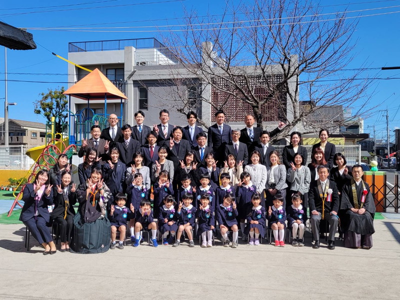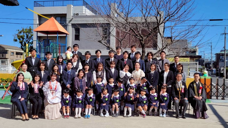 式の後に、園庭で写真撮影をしました。青空の下、素敵な写真が撮れました♡