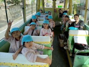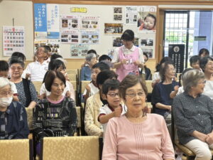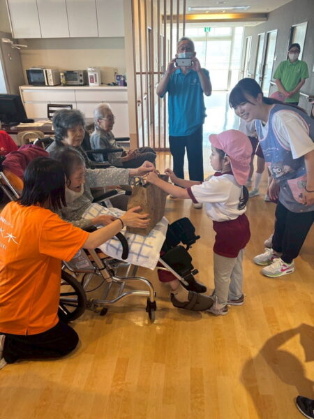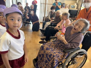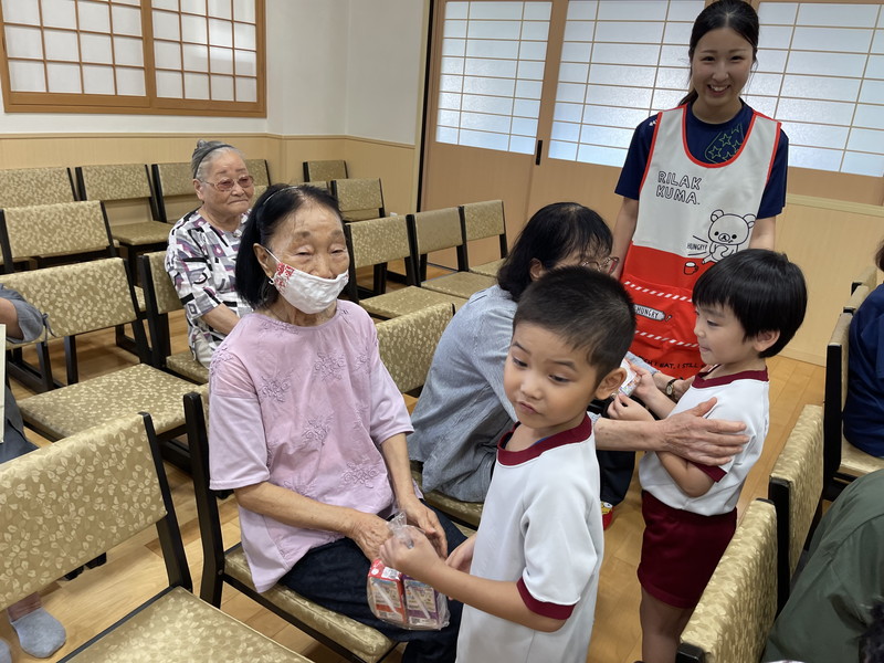 「運動会練習、頑張ってくださいね!」と、励ましの言葉をいただき、子どもたちも運動会への気合が入ったように感じました。おじいちゃん・おばあちゃんはいつも優しく声をかけてあたたかく迎えてくださるので、嬉しいです。とても楽しくあたたかい敬老会でした♡