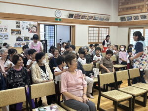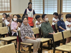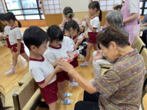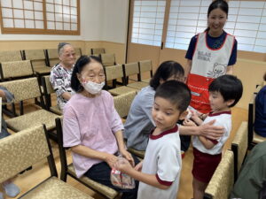 9月16日(火)は、幼稚園の隣の鴨池出張所で「敬老会」があり、年長組が代表で参加しました。