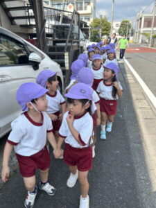 10月9日(木)に、「特別養護老人ホーム・花水木」に年中組さんが訪問しました。
