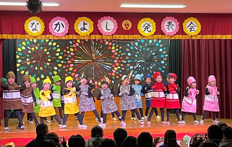 年少組・未満児クラスの子どもたちの中には、”初めての発表会”という子もいましたが、たくさんのお客さんの前で舞台に立ち、一生懸命発表する姿がとても可愛いかったです💕また、4月当初からの子どもたちの成長をとても感じました!
