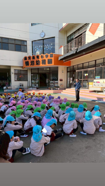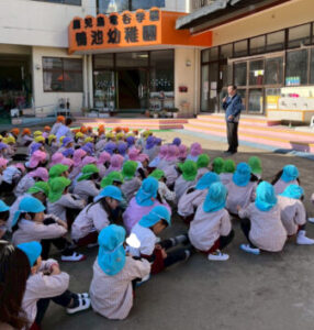 園長先生や担当の先生のお話をよく聞き、冬の時期は火事が多いことや
