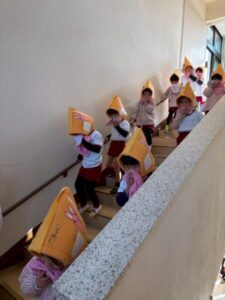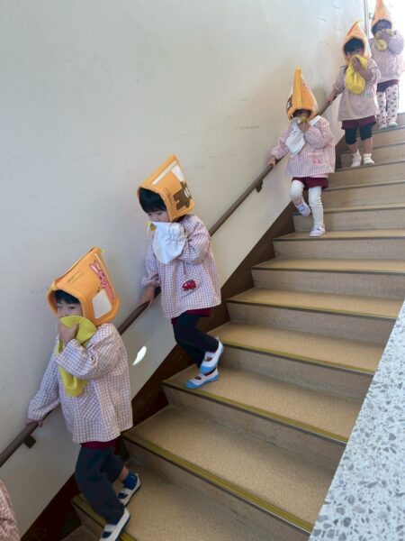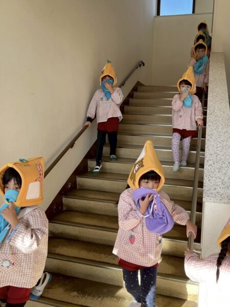 災害はいつ起こるか分からないので、毎月の避難訓練で避難の仕方や身の守り方を繰り返し伝え、いざという時に備えていきたいと思います。